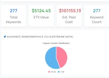 See which Google topic categories your domain is associated with, along with keyword counts, ETV values, audience demographics and position distribution.